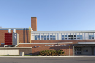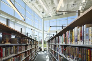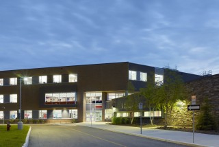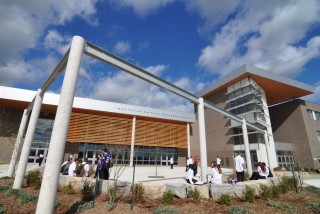 Conceived for the net generation, it marries innovation with high design through a bold fusion of resilient every-day building materials re-imagined and forms that echo light and warmth. With streaming daylight and views to the outside, the layout fosters an open, transparent environment within the school that visually integrates it with its site and outdoor playing fields. A bright soaring atrium connects the multi-story academic wing to the shared community spaces; corridors are shorter, with abundant natural light and punctuated with breakout spaces to encourage learning beyond the classroom.